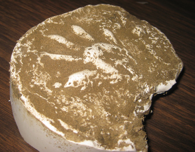 Plaster cast of raccoon (Procyon lotor) track made during Ecology mammal-tracking lab outing