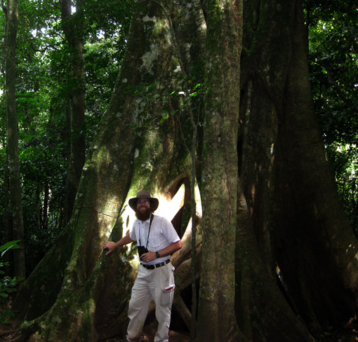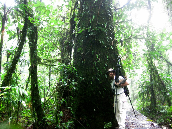 Blake Mathys by large strangler fig near Monteverde Inn