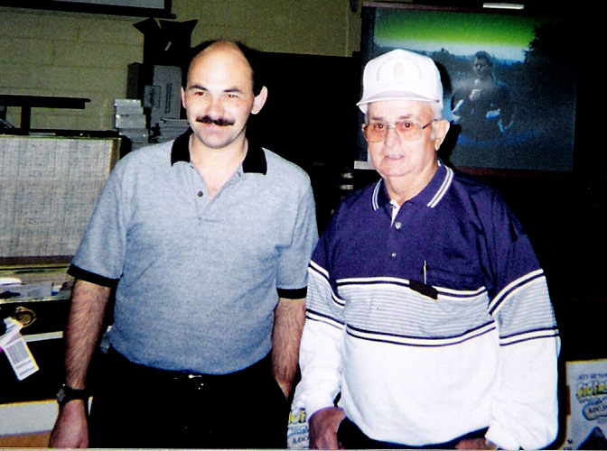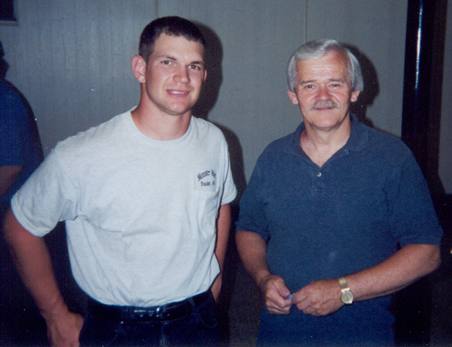 Blake Mathys (L) and Larry Lund at TSBSG meeting. Taken summer 1999.