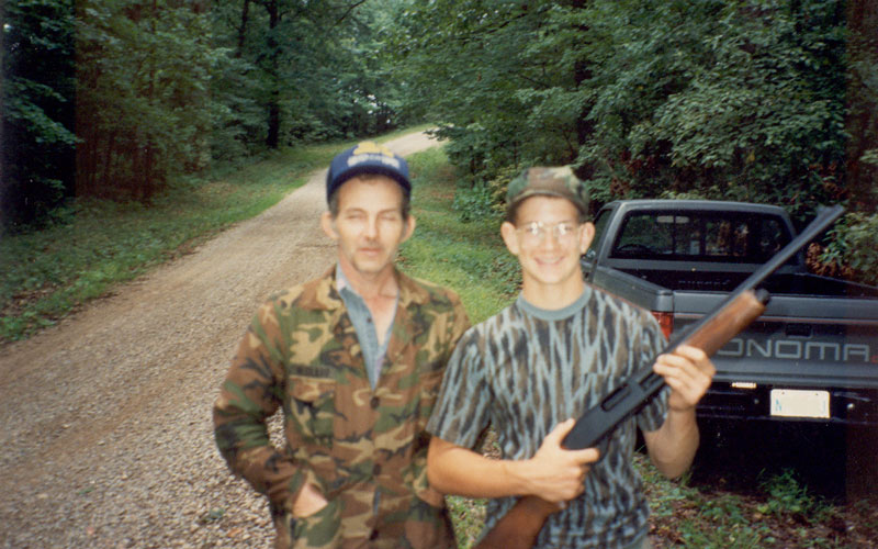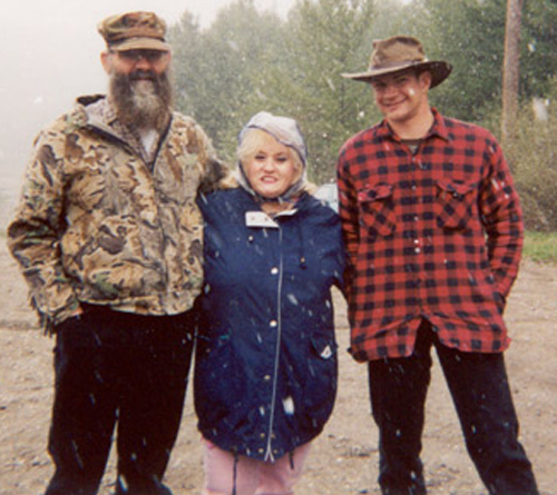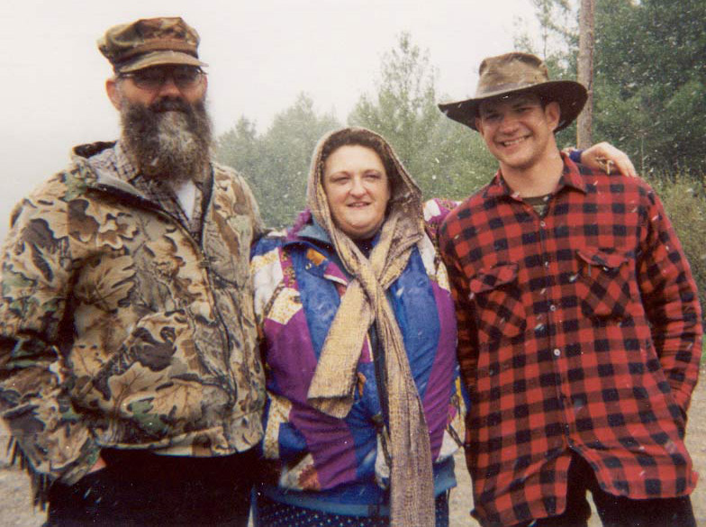 Mike Claar (L), Bigfoot researcher from Vinton County, OH, and Blake Mathys. Taken 1994.