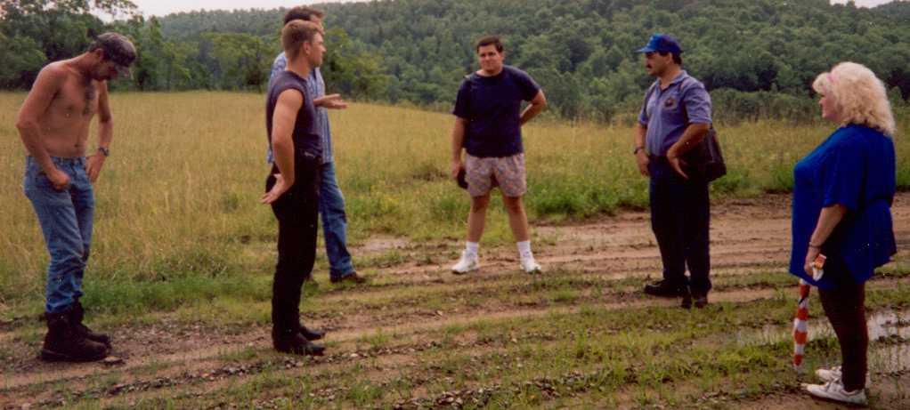 From left to right: Matt Heston (shirtless), Blake Mathys, Scott Herriott, Marc DeWerth, Don Keating, and Peggy Sullivan. This area, known as 'Sasquatch Lake' or 'The Film Site' or Woodbury Wildlife Management Area, was regularly visited on the weekends of the TSBSG meetings, often at night after the meetings.