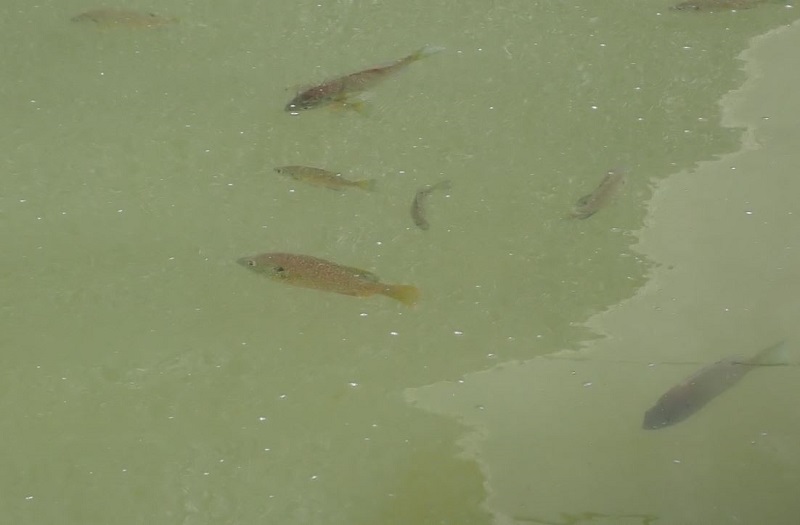 | Many sunfish were trapped in the spillway |