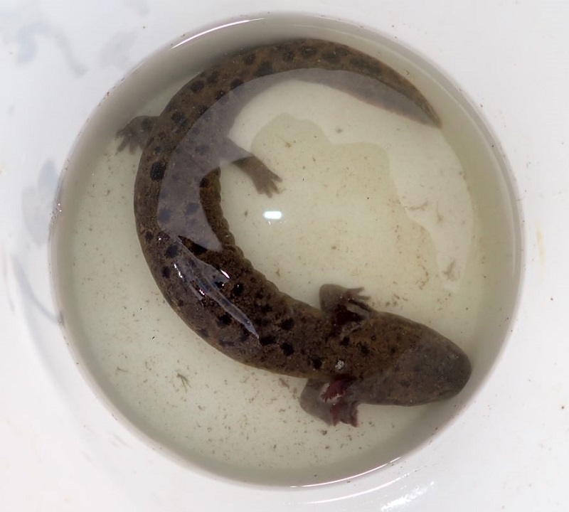 | A close view of a waiting mudpuppy |
