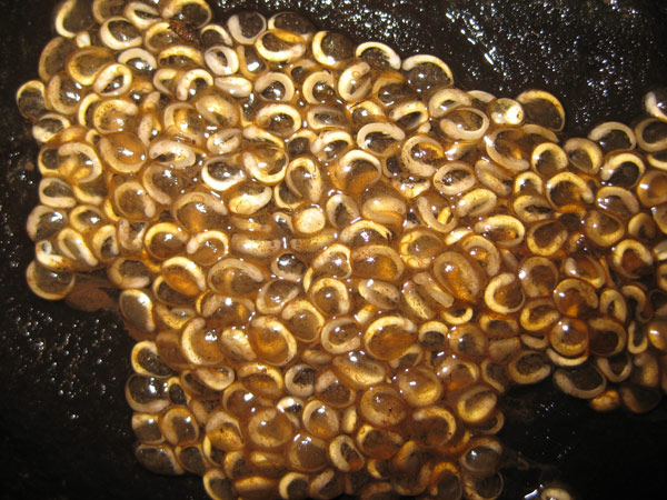 Salamander eggs found under a rock in a small stream