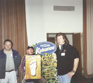 Tom Steenburg (L) and Richard Noll, with Kokanee Beer promotional featuring the late Rene Dahinden